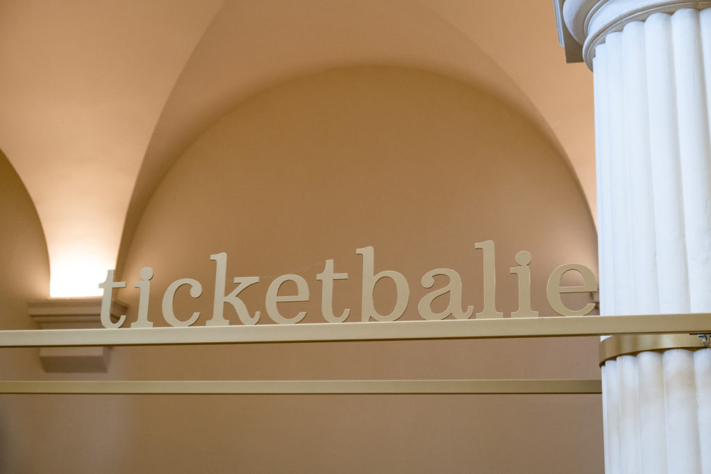 Enlightened wayfinding, reception desk and the ever-necessary foyer bar at Lumière Mechelen.