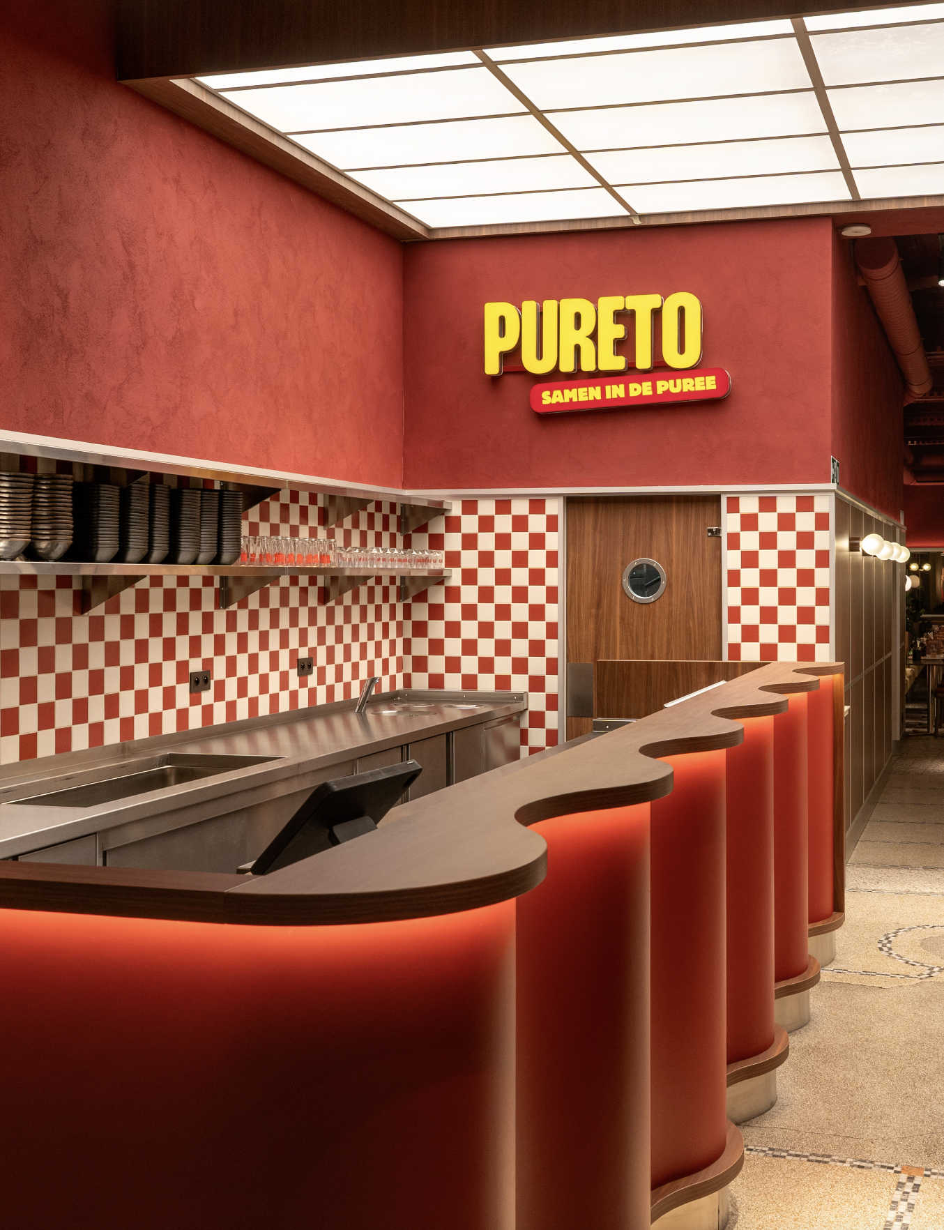 By abstracting shapes and textures, we uncovered the right design language to translate the sensuality of Pureto’s purée into a lasting spatial experience.
